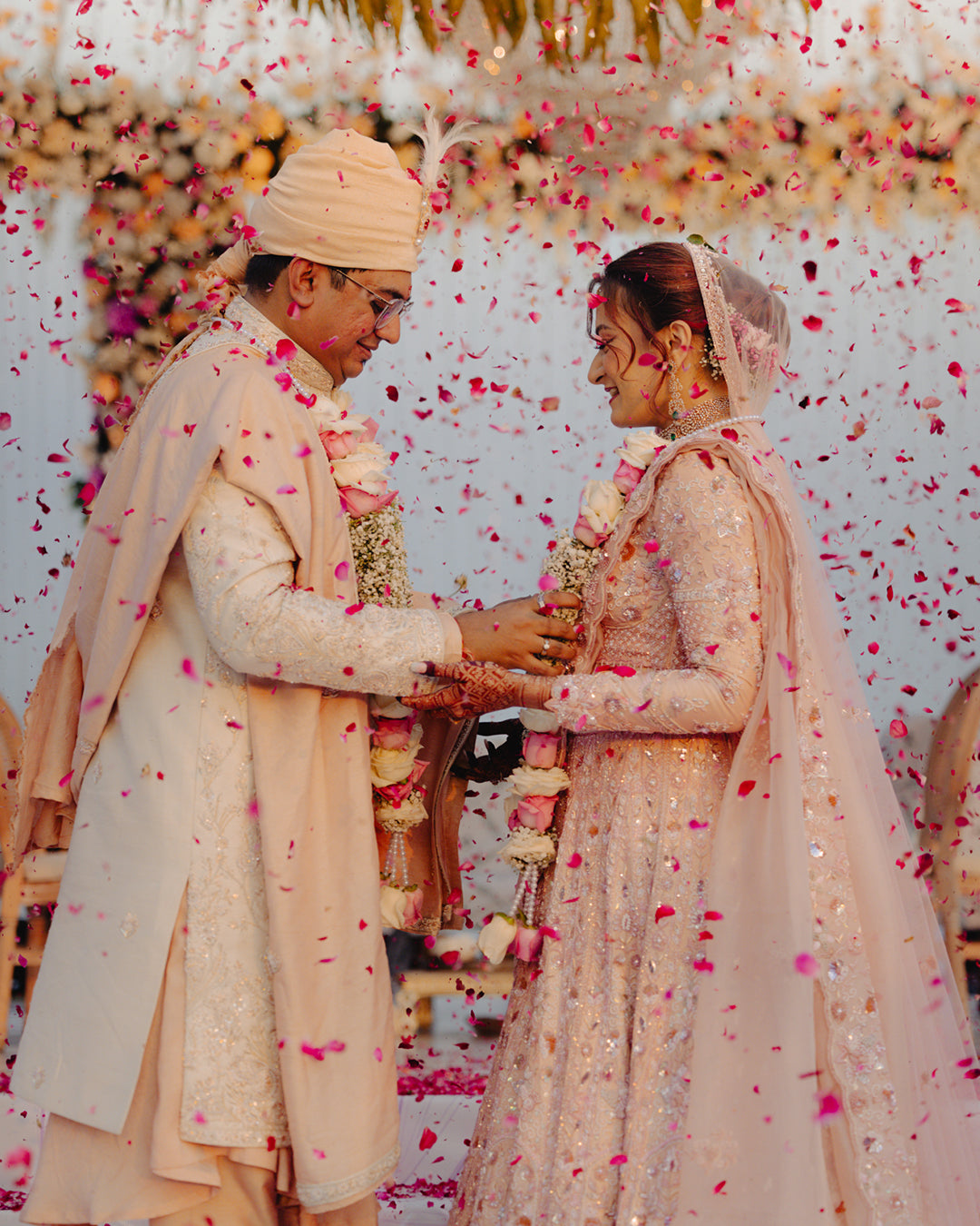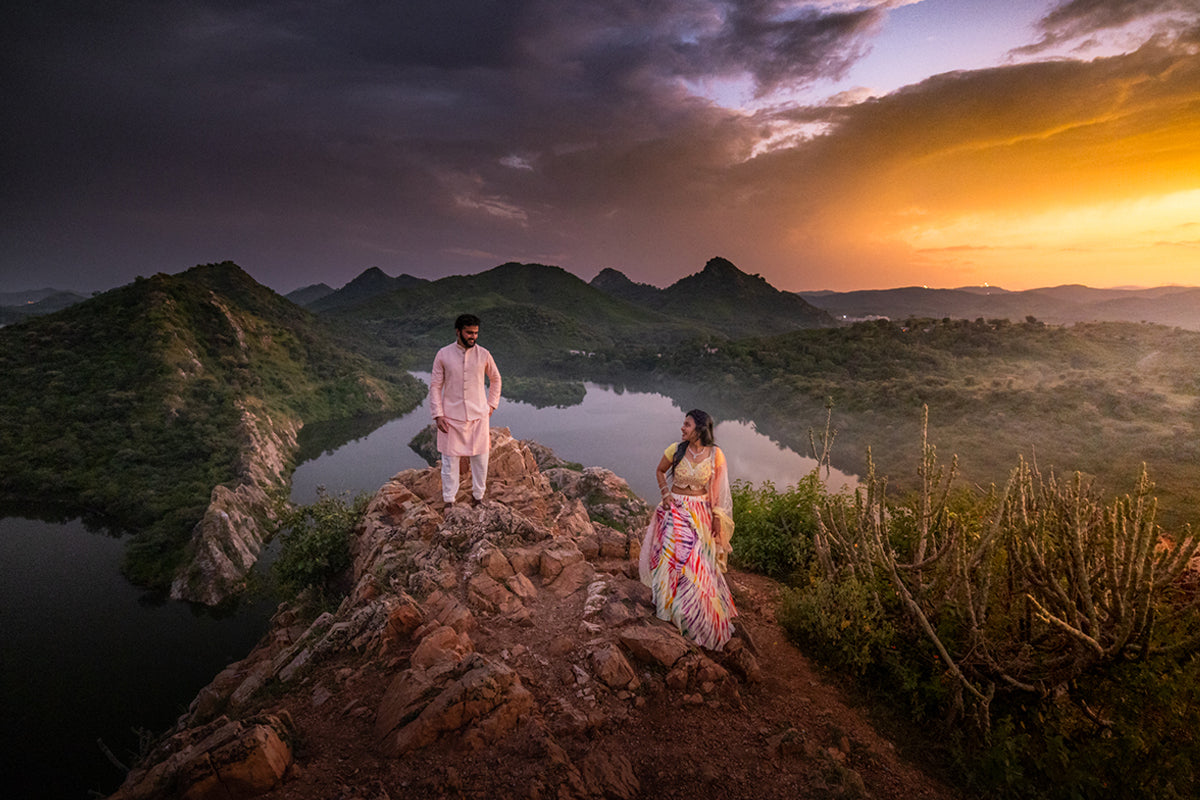 A full-day shoot (or multi-day for destination pre-weddings) covering golden hour and blue hour. I guide you through natural poses and real interactions — walking, laughing, whispering, dancing — so every frame feels genuine, not staged. Drone aerials captured at the best moments.